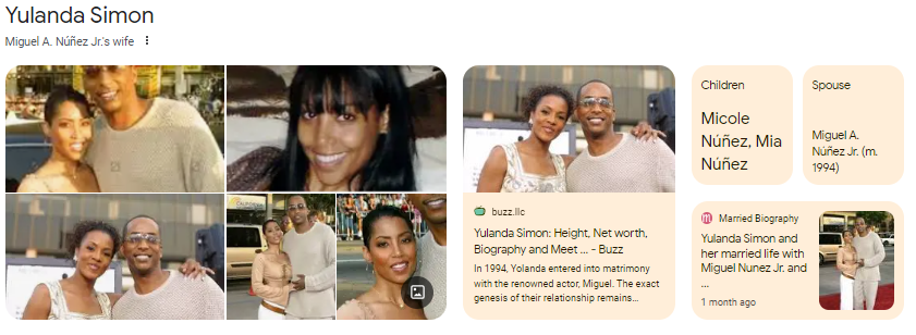In a nutshell, Yulanda Simon’s life story is a captivating blend of mystery and warmth, woven into the fabric of her connection with the multitalented Miguel A. Núñez Jr. Despite her preference for privacy, Yulanda’s impact shines through as the devoted partner and mom to two incredible daughters. Her journey, veiled in secrecy, speaks to the power of resilience and the beauty found in life’s unpredictability. While Miguel dazzles in the entertainment world, Yulanda’s choice to stay behind the scenes reflects a genuine commitment to family. Her tale is a reminder that strength and inspiration often emerge from the quiet corners of our lives, urging us all to face challenges with a touch of grace and a lot of heart.